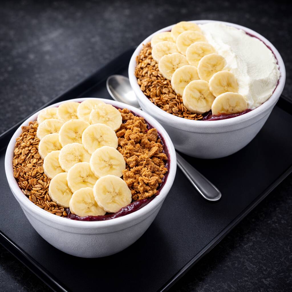 Delicioso Açai com leite em po, leite, condensado, 1 fruta a sua escolha