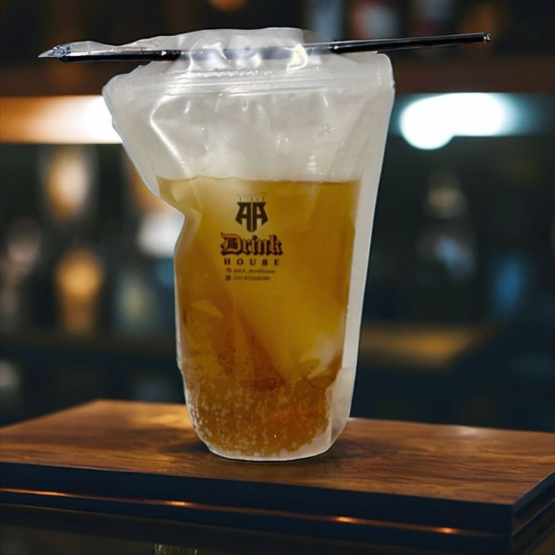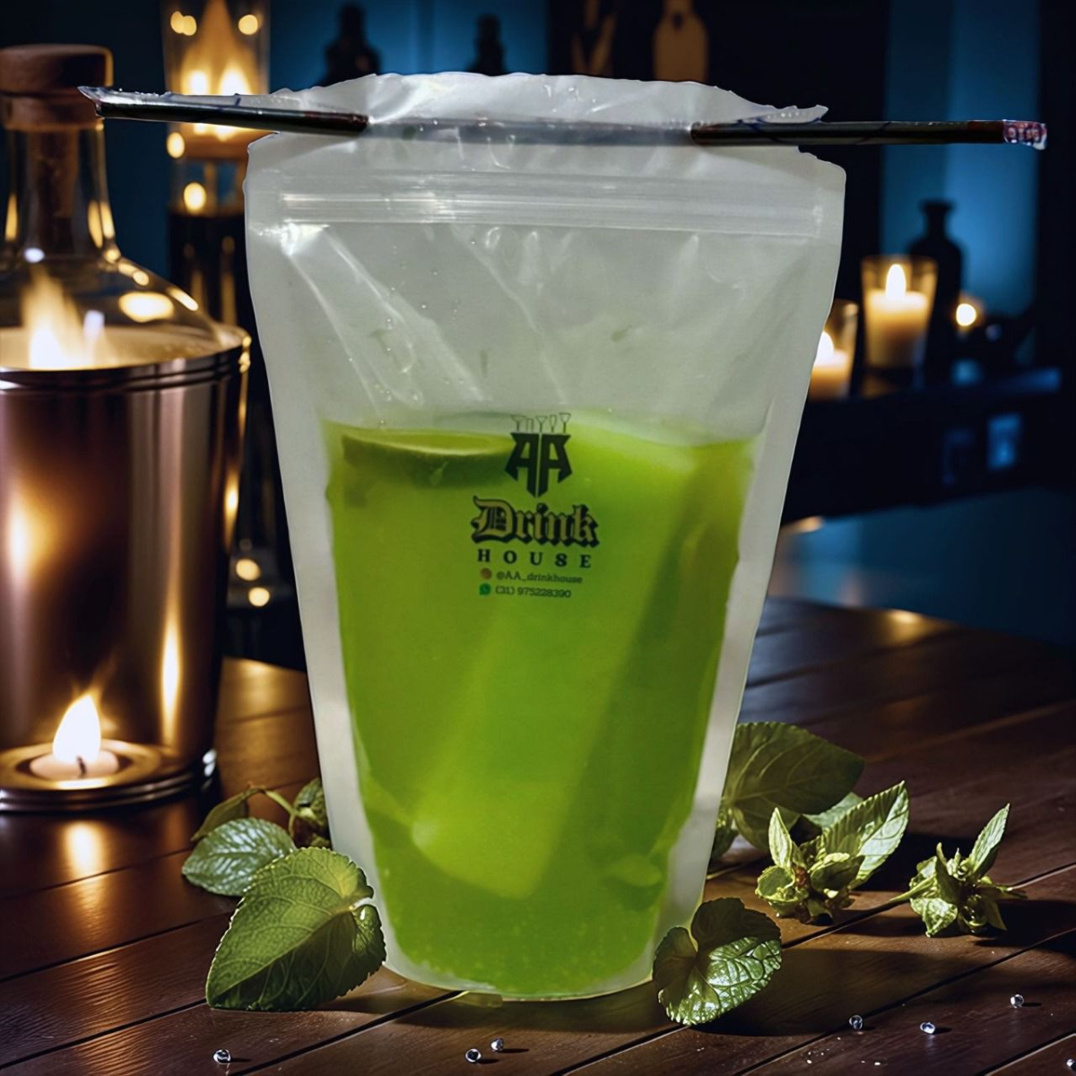 Vodka ou gin, energético artesanal maçã verde, suco de limão natural, gelo saborizado