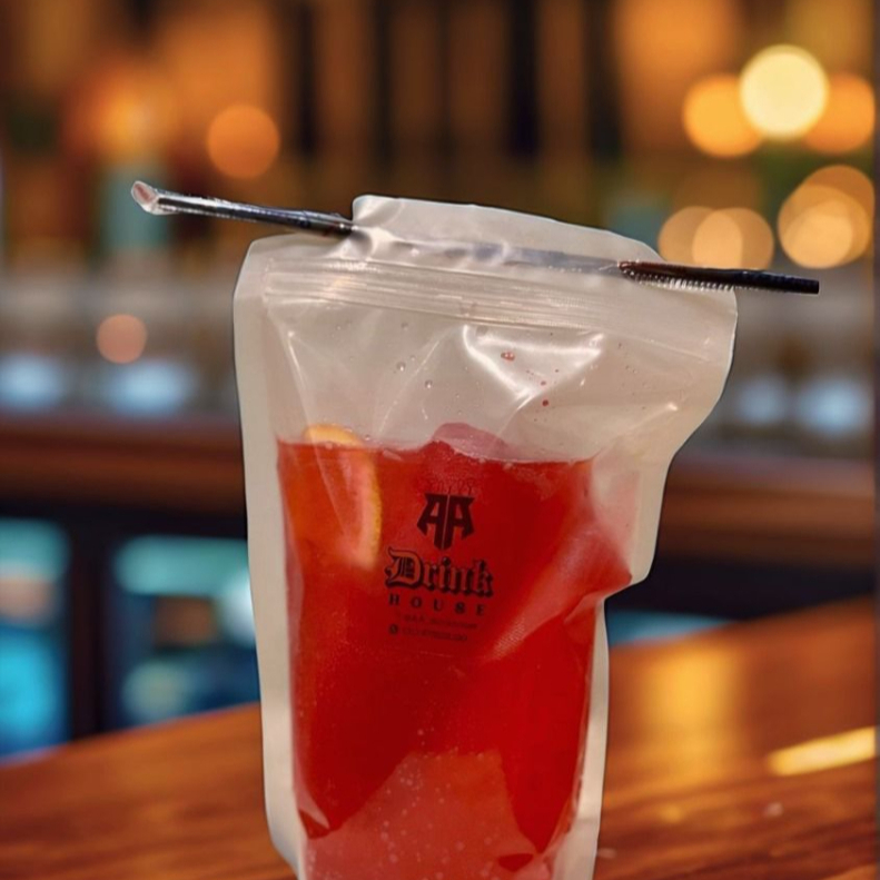 Vodka ou gin, energético artesanal melancia, suco de morango natural, gelo saborizado
