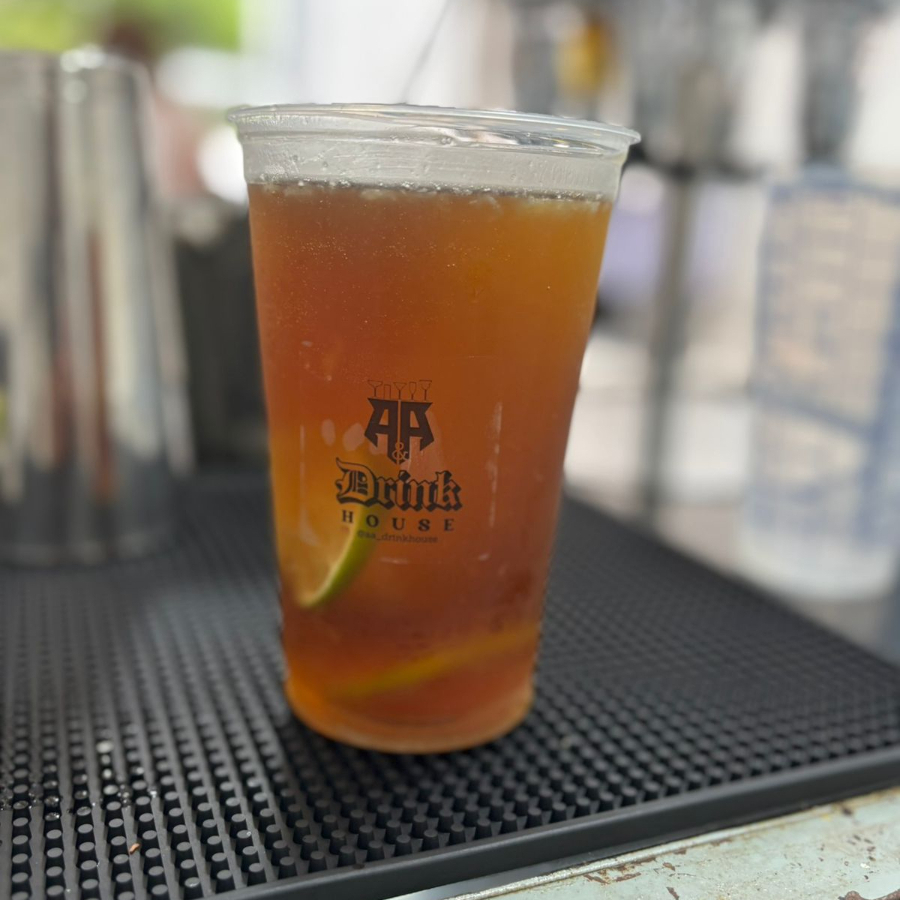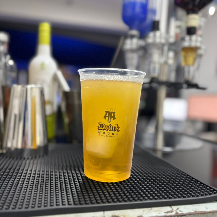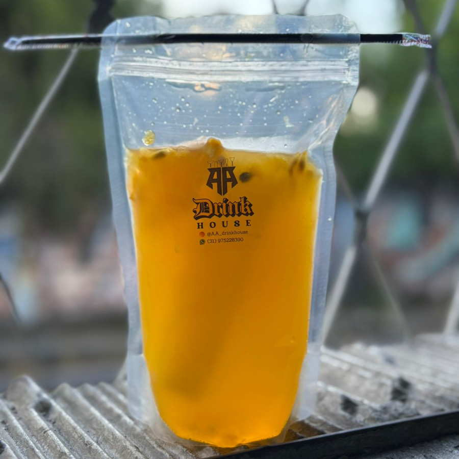 Vodka ou gin, energético artesanal tropical, suco de maracujá natural, gelo saborizado
