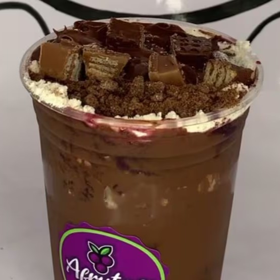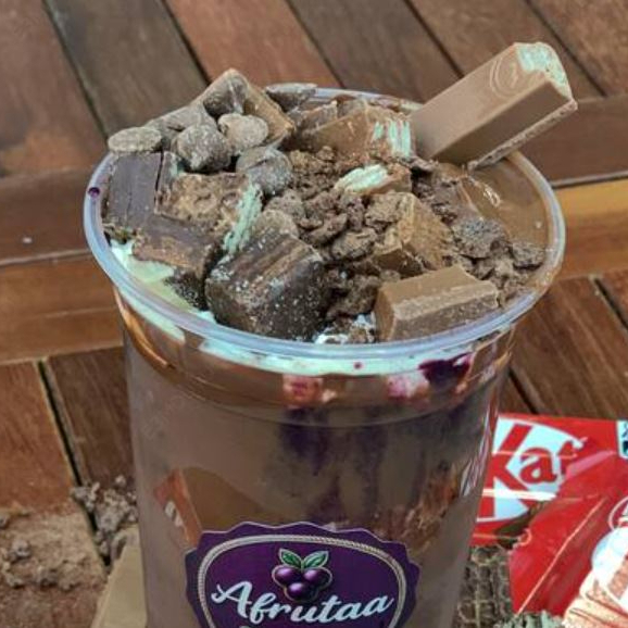 Delicioso Açaí 500ml com Kit Kat, Cobertura Chocolate, Leite em Pó, Leite Condensado.