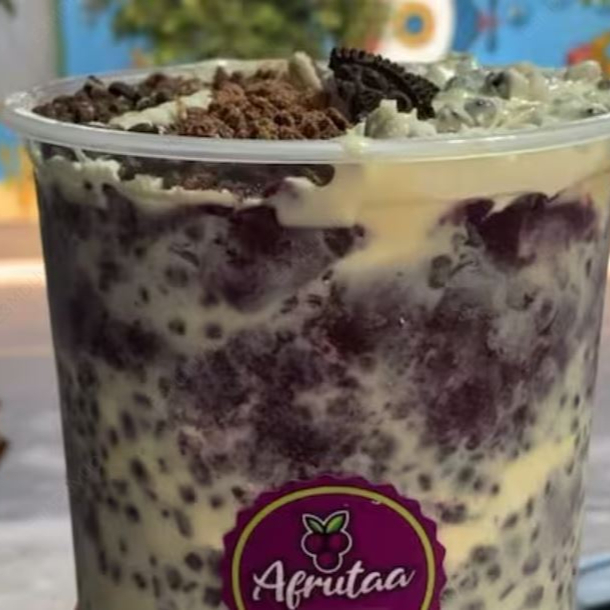 Delicioso Açaí 1 Litro composto por Creme Laka com Oreo, Biscoito Oreo, Ovomaltine, Tubin, Leite em pó e Leite condensando.