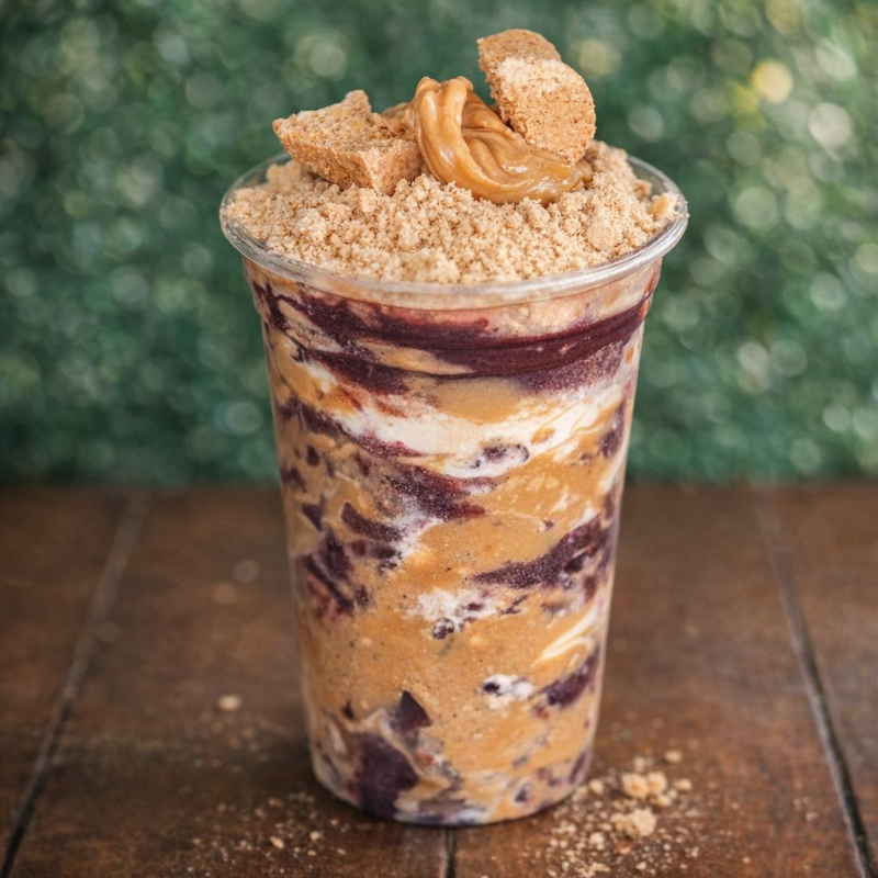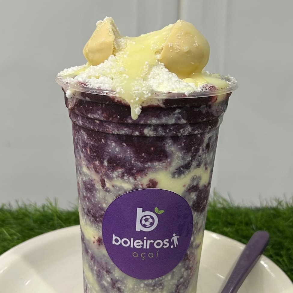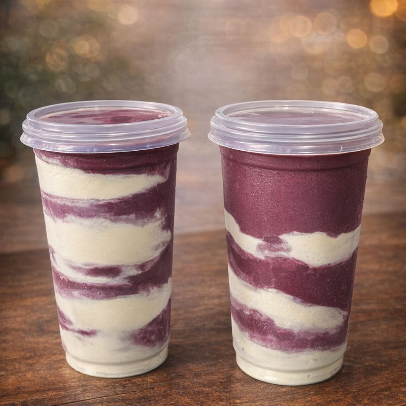 Acompanha 2 Vitaminas de Açaí de 500ml com 3 camadas de leite em pó