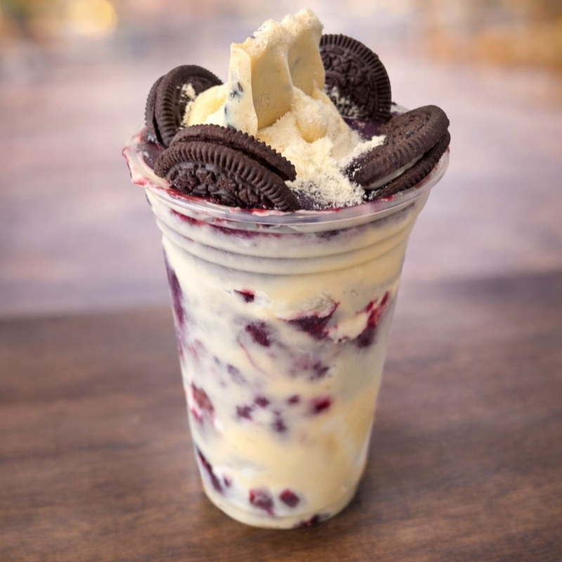 Açaí Laka Oreo. Acompanha: creme de leite Ninho, chocolate laka, Oreo, leite em pó. O Açaí é feito no ato do pedido, chegando fresquinho e saboroso.