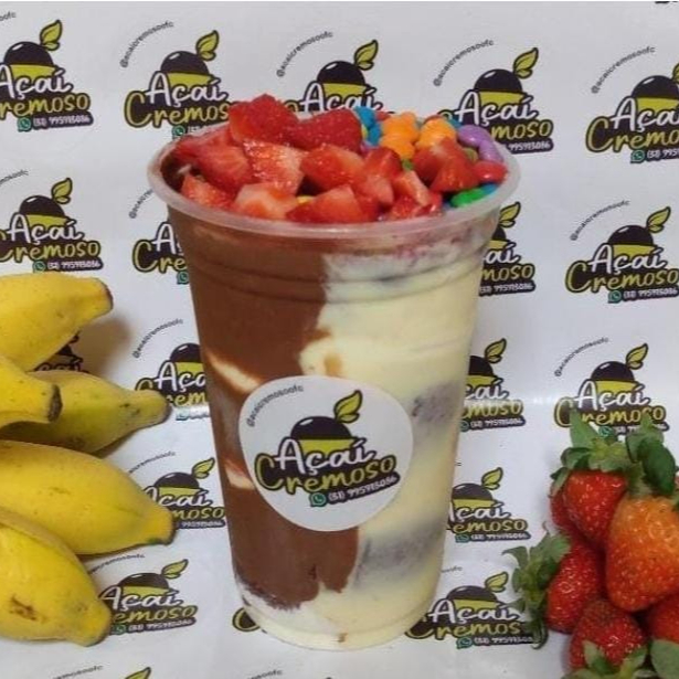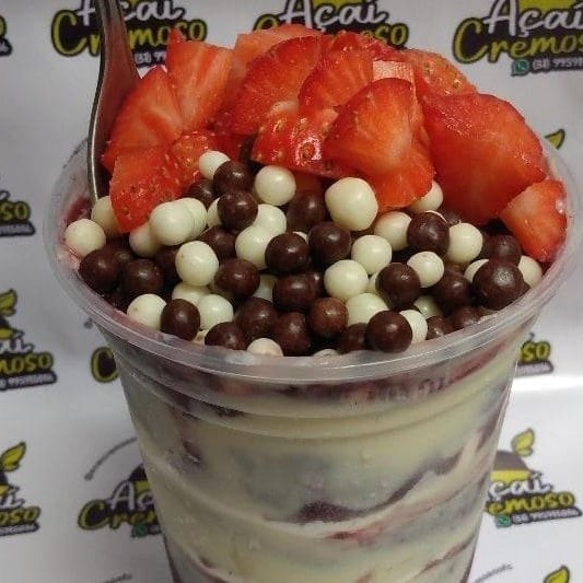 acompanha : creme de açaí . leite em pó, creme de ninho, chocoboll e morango