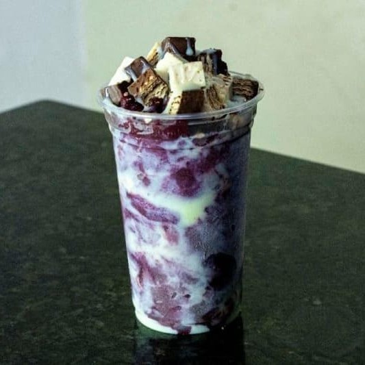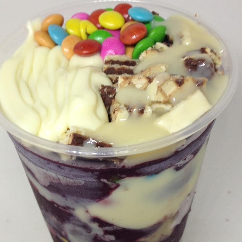 Açaí cremoso acompanhado de pedaços de Sonho de Valsa, cobertura de leite condensado, leite Ninho e pedeços crocantes de Bis Branco. Uma combinação perfeita entre o sabor do açaí e a doçura dos chocolates mais amados.