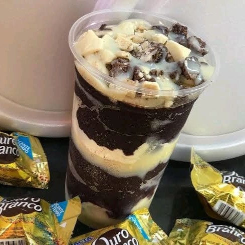 Uma joia rara no mundo dos açaís: base cremosa de açaí geladinho, bombom Ouro Branco crocante e recheado, Nutella derretendo como lava de chocolate, uma nevasca de leite em pó e o toque final: leite condensado escorrendo como ouro líquido! É luxo, é sabor, é exagero do jeito certo. Quem prova, entende: esse não é um açaí qualquer… é um evento gourmet! Obs: - Copo de 300ml - Não substituímos itens ou mandamos separados, somente retiramos itens desejados mediante observação no pedido. - Somente acréscimos pagos, são enviados separadamente. Imagens Meramente Ilustrativas