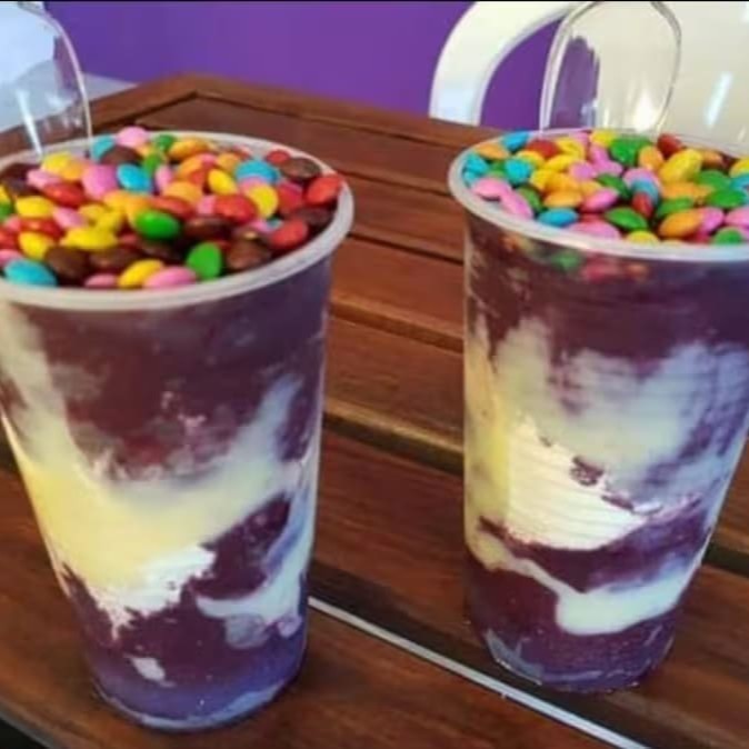 combinação perfeita que vicia desde o primeiro gole Açaí super cremoso, geladinho, com leite condensado escorrendo na garrafa e finalizado com uma camada generosa de leite em pó que dá aquele toque doce e marcante. Sabor intenso Textura cremosa de verdade Doce na medida certa Ideal pra matar a vontade de doce ou se refrescar do jeito mais gostoso possível!