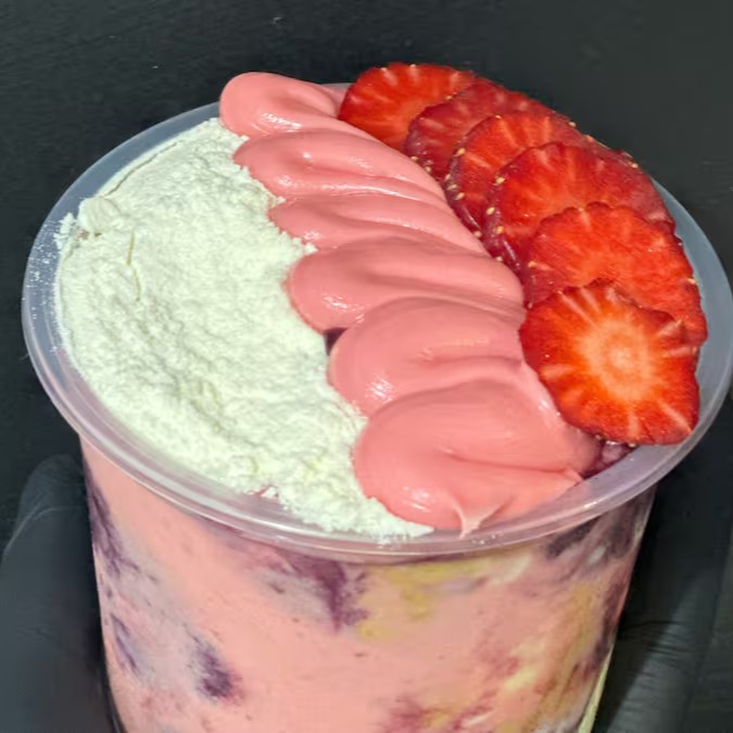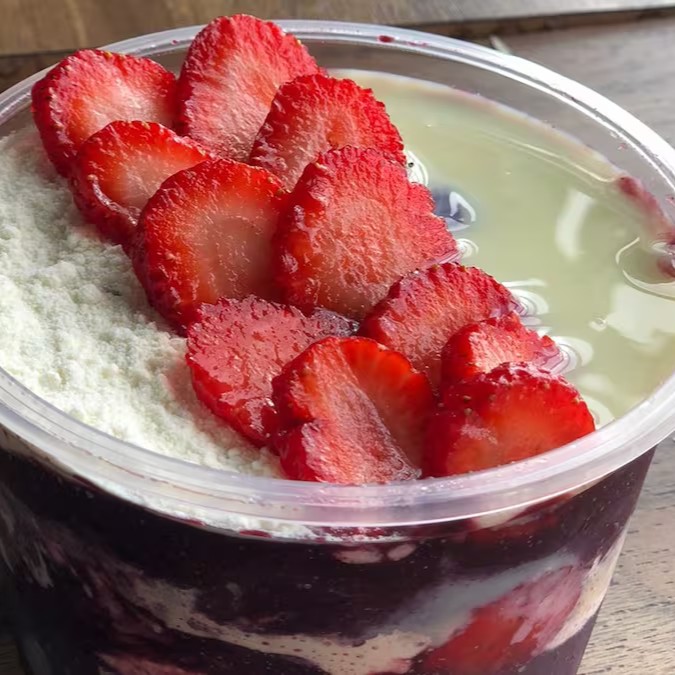 Açaí, morango, leite em pó e creme de Ninho