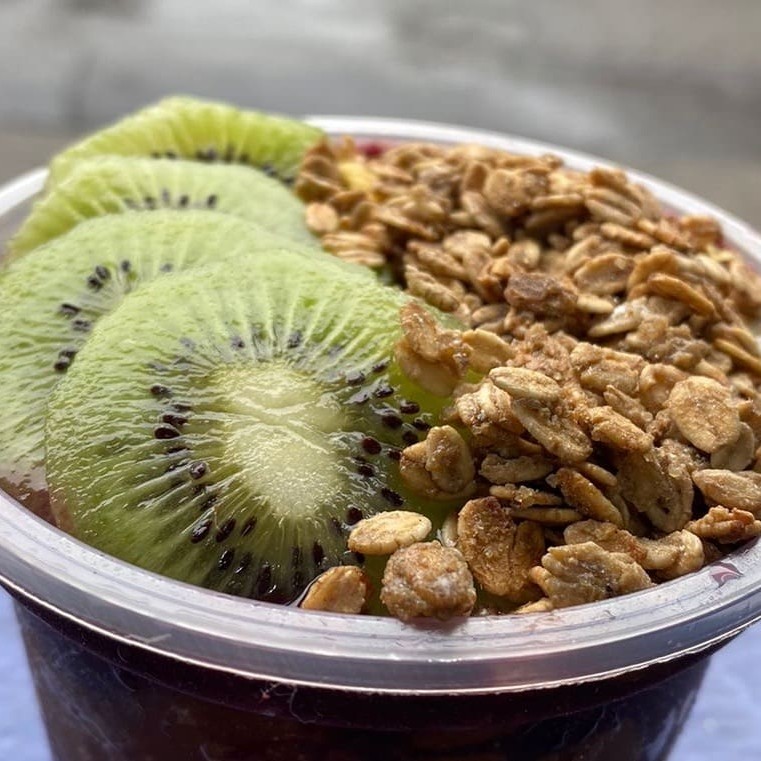 Açaí, banana, kiwi, granola, leite em pó