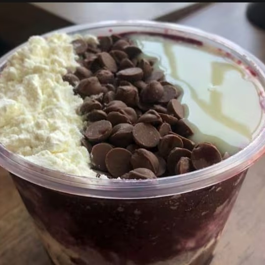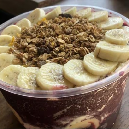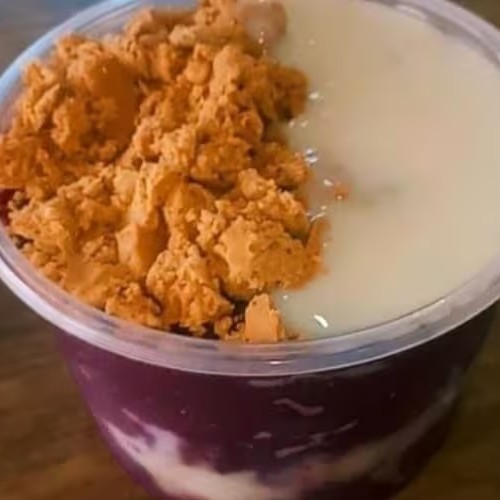 Super vitamina de Açaí Premium batida com banana, granola, leite em pó e leite condensado, proporcionando uma experiência cremosa e ótimo pra dar aquela energia pro Dia a Dia......