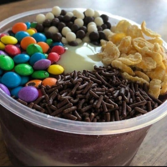 Açaí, Confete , granulado, sucrilhos, chocopower, e leite condensado