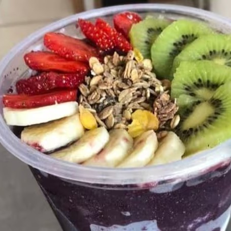 Açaí, kiwi, morango, banana, granola e leite condensado