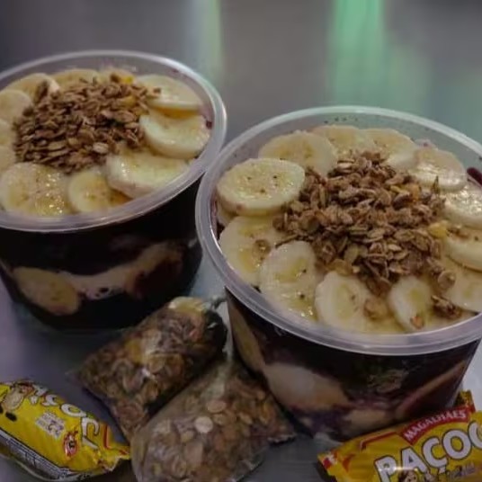 Creme de Açaí, leite condensado, leite em pó, Banana e granola