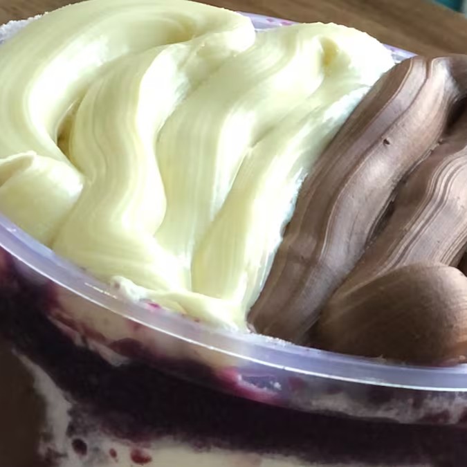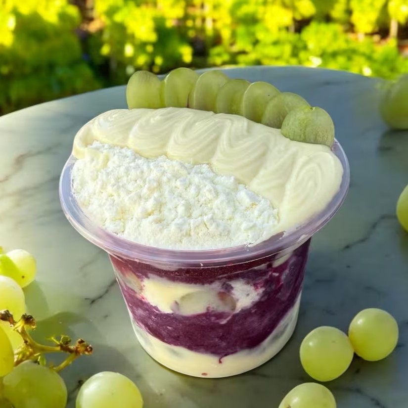 Açaí, Creme de Ninho, leite em pó e uva verde.