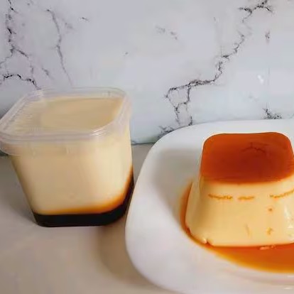 Pudim de leite com calda, vai no pote de 220ml. Uma sobremesa sensacional! Exprimente!