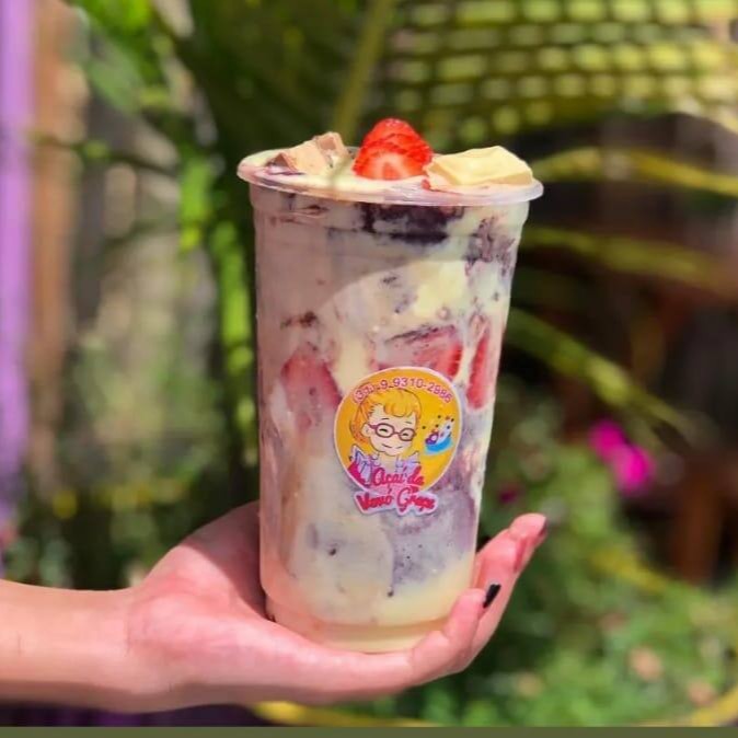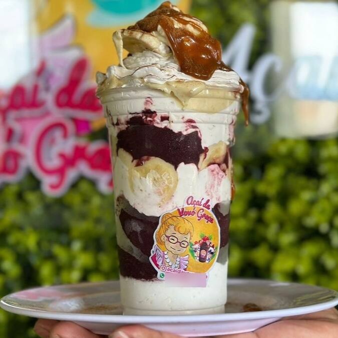 Experimente nosso delicioso Açaí com uma mistura perfeita de leite em pó, leite condensado, banana e granola crocante separada.