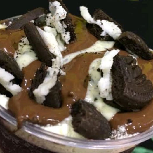 Creme de açaí, leite em pó, leite condensado, confete e paçoca