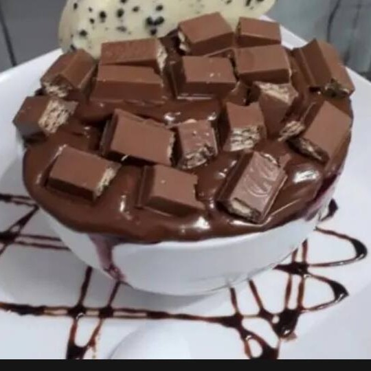 Creme de açaí + creme Ninho + creme de avelã chocolate Kit Kat+ leite em pó ( esse prato possui uma das combinações mais deliciosas que é o creme Ninho e a verdadeira Nutella!!!)