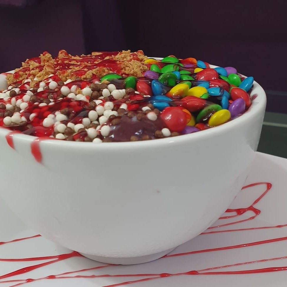 Creme de açaí, leite em pó, chantilly, morango, creme de avelã e 1 paleta mexicana
