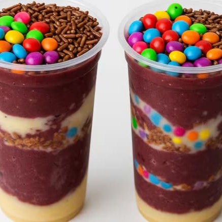 Açaí Cremoso com Creme de Avelã, Creme de Ninho e Leite em Pó.