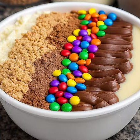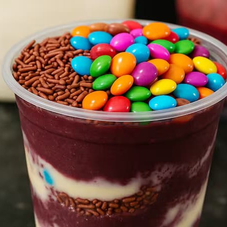 Açaí Cremoso com Creme de Avelã, Leite em Pó e Leite Condensado.