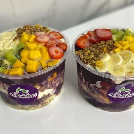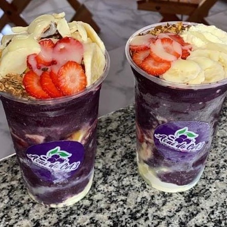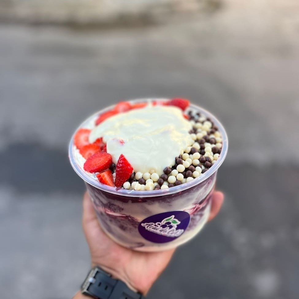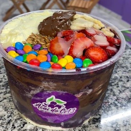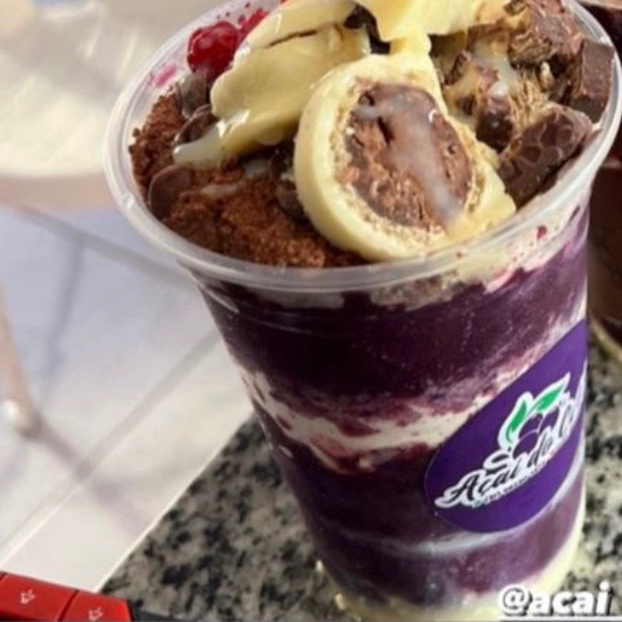 Açaí, Banana, Morango, Kiwi, Manga, Leite em Pó, Leite Condensado, Granola.