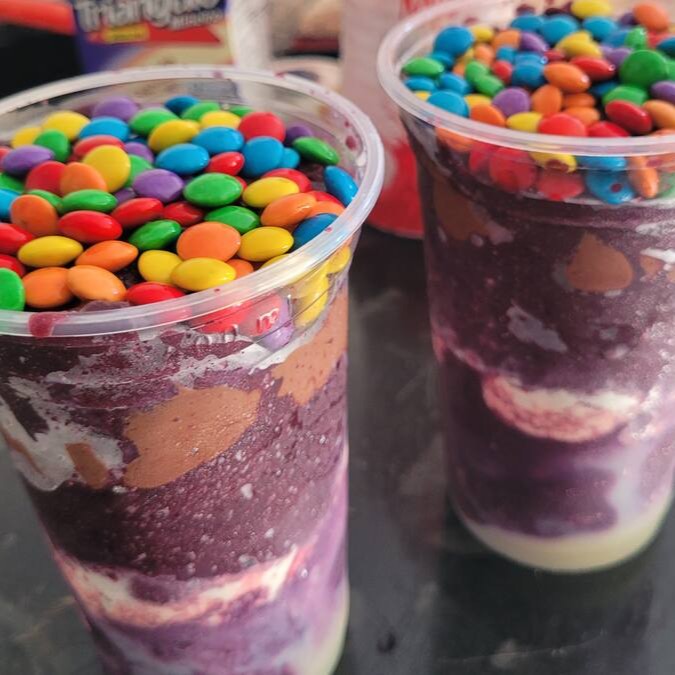 Acompanha 2 copos de açaí de 500 ml com 4 complementos, leite condensado, leite em pó, creme de avelã e disquetes!
