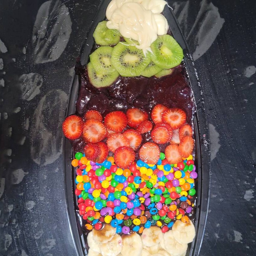 Esse delicioso açai, acompanha leite condensado, leite em pó, creme de avelã e disquetes!