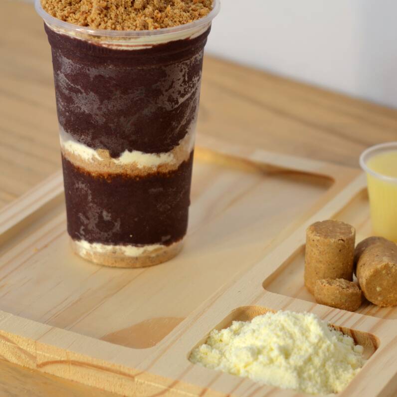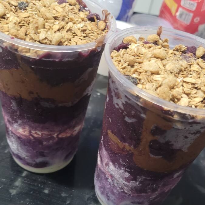 Consiste em dois generosos potes de 700 ml de um autêntico e cremoso açaí, cuidadosamente finalizados com um delicioso creme de avelã, que acrescenta um toque de sofisticação ao prato. Acompanha ainda uma porção de crocante granola, enriquecida com o sabor adocicado do leite em pó, e uma generosa cobertura de leite condensado, que adiciona uma doçura irresistível.