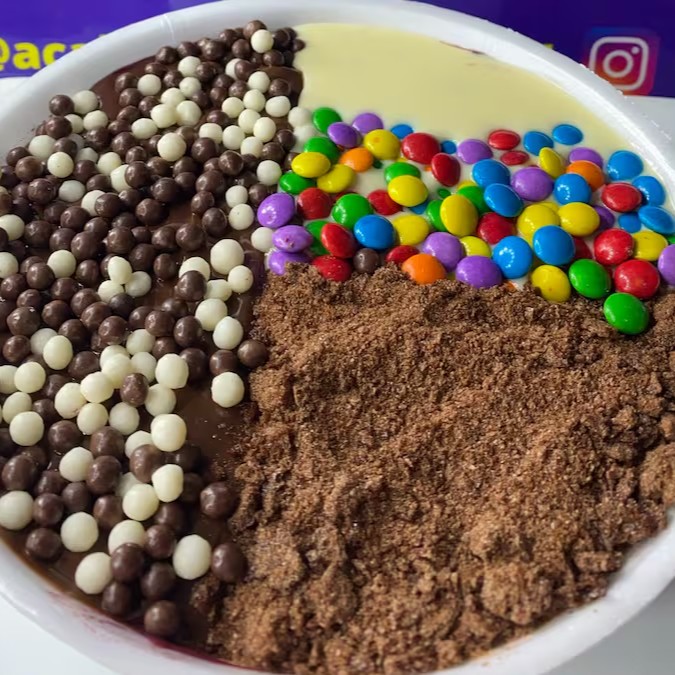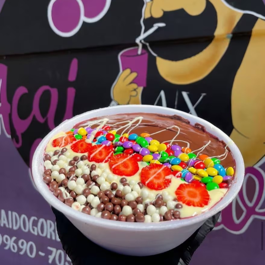 Açaí (1 Litro) Creme Ninho, Confete, Paçoca, Chocobal.