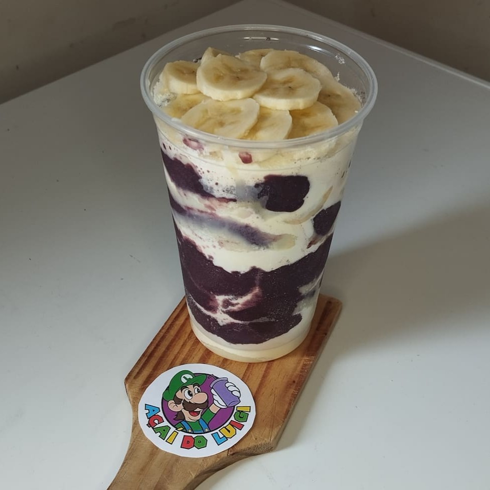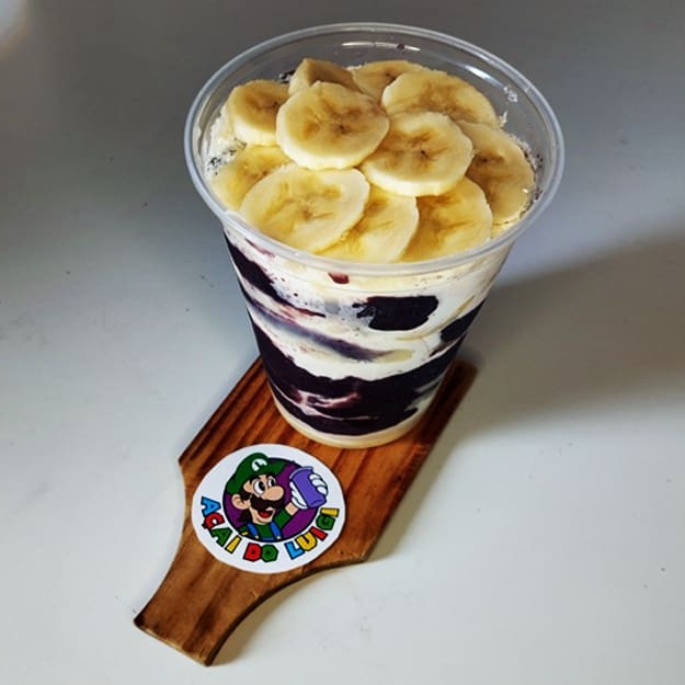 Açaí do Luigi com leite em pó, leite condensado, banana e granola.