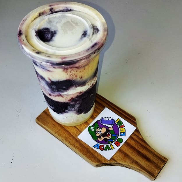 Açaí do Luigi com leite em pó, leite condensado, Nutella e creme Ninho.
