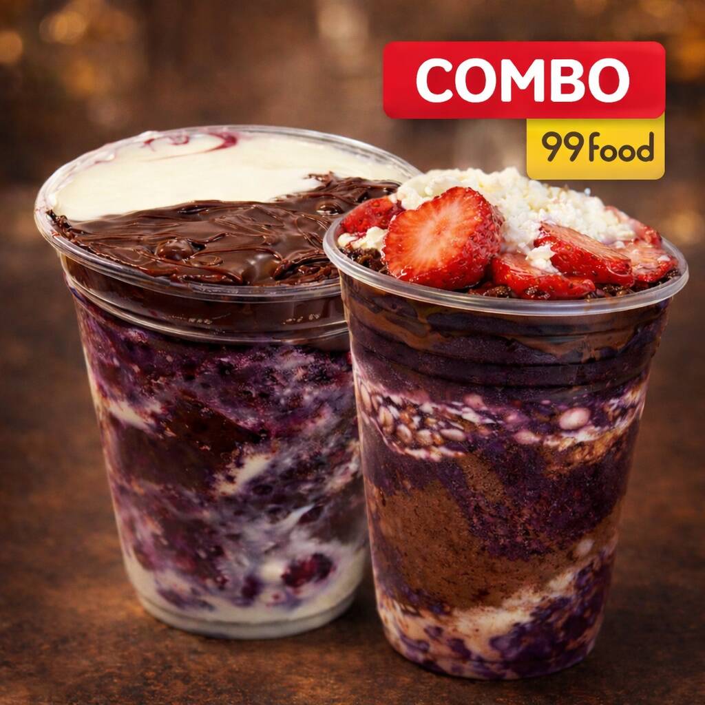 Açaí, Paçoca, creme de amendoim, leite condensado e leite em pó.