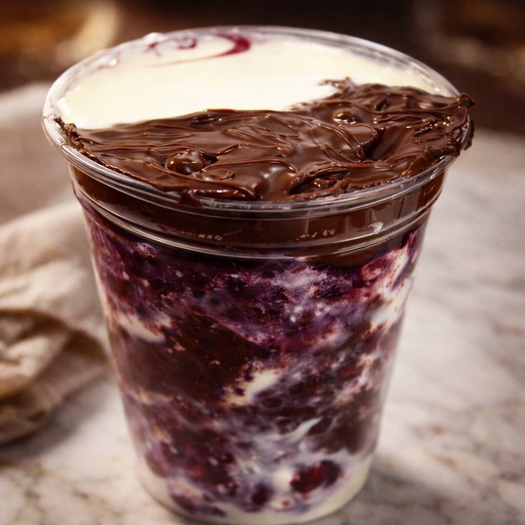 Açaí com Nutella, creme ninho, leite em pó e leite condensado.