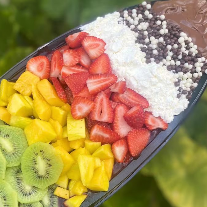 Açaí, Morango, Banana, Manga e Kiwi.