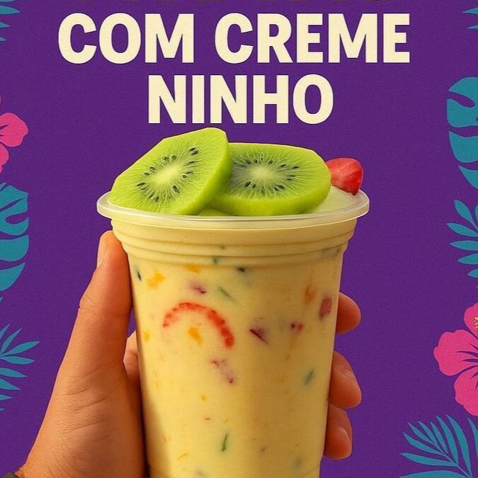 Banana, Morango, Kiwi, Manga e creme Ninho.