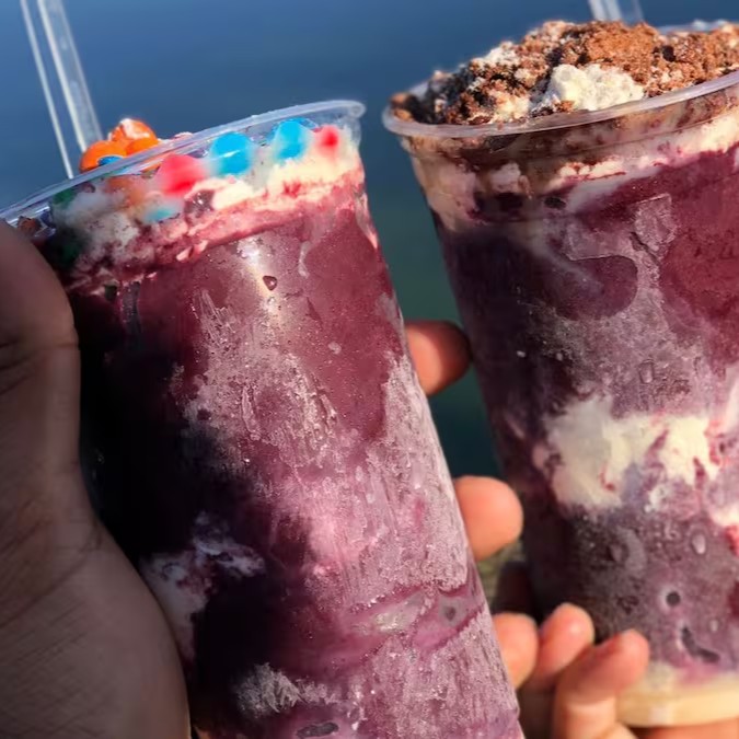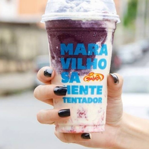 Experimente esse par perfeito. Versão mega cremosa. Shake de leite Ninho acompanhado de creme de açaí.