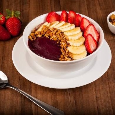 Acompanha Granola Crocante, Morango Fresco e Banana. ( Pré e pós Treino )