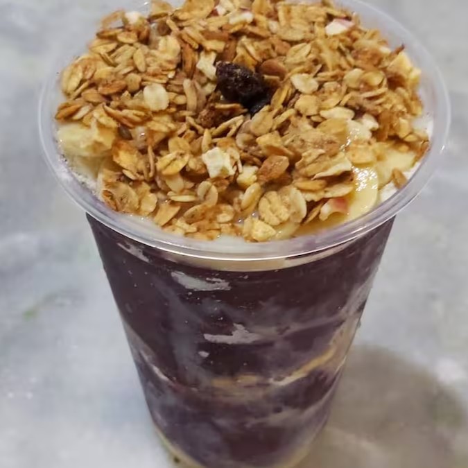 Creme de açaí saboroso e cremoso com granola e banana separados 500ml.