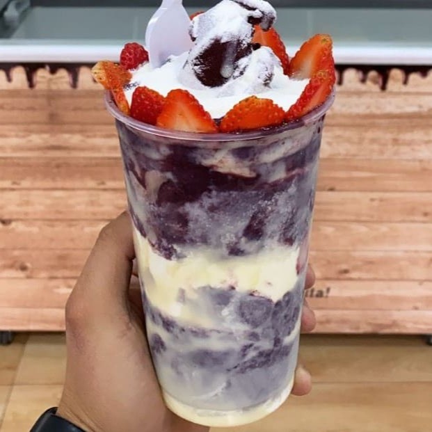 Acompanha creme de açaí, Cobertura de chocolate, gotas de chocolate, leite em pó e leite condensado. (Não enviamos separado.)