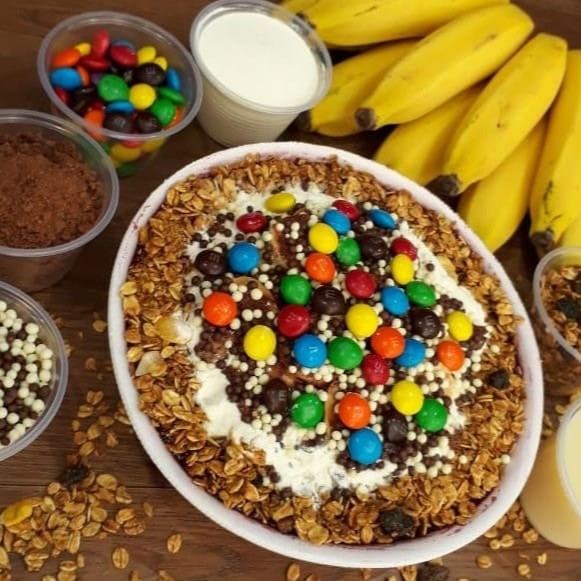 Acompanha creme de açaí, leite condensado, Ovomaltine, leite em pó e banana. (Não enviamos separado.)