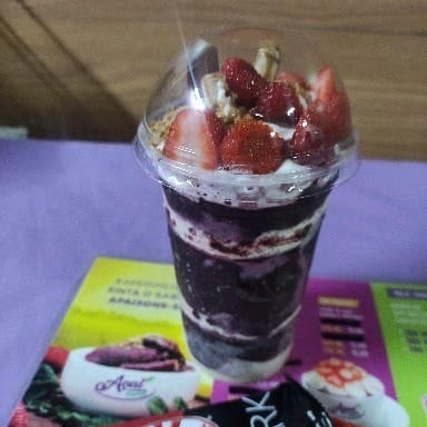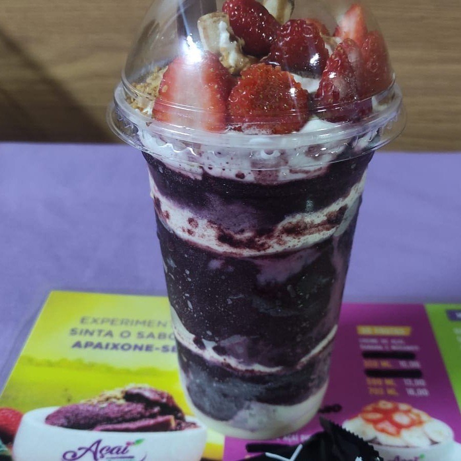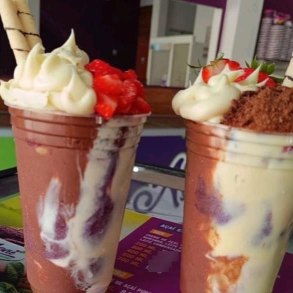 Creme de açai, camada leite em pó e leite condensado. ------------------------Tags---------------------------- Açaí, Açaí trufado, Barca de açaí, chocolate, chanteninho, milkshake, promoção, taxa grátis, oferta, off, 0800