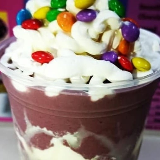 Açaí, leite em pó, leite condensado, chantily e confets. ------------------------Tags---------------------------- Açaí, Açaí trufado, Barca de açaí, chocolate, chanteninho, milkshake, promoção, taxa grátis, oferta, off, 0800