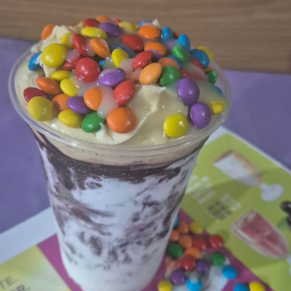 Açaí, leite em pó, leite condensado, chantilly e confets. ------------------------Tags---------------------------- Açaí, Açaí trufado, Barca de açaí, chocolate, Chantinhinho, milkshake, promoção, taxa grátis, oferta, off, 0800