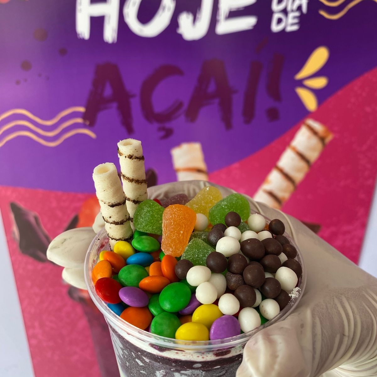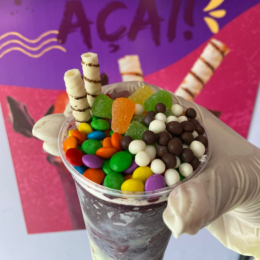 creme de açaí, leite em pó, leite condensado, chocobol, confetes, jujuba, biju