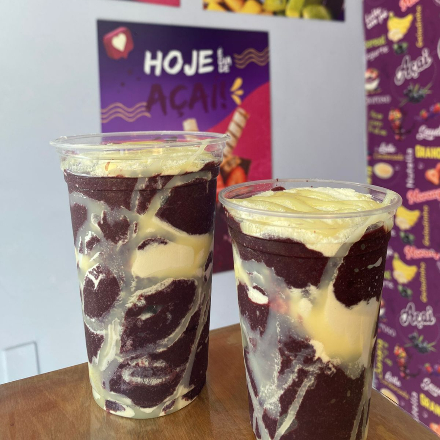 1 Açai básico de 500ml (Açai,leite em pó, leite condensado) 1 Açai especial de 500ml (Açai, leite em pó, leite condensado, amendoim, chantilly, creme de avela, Kit Kat, morango, tubetes)