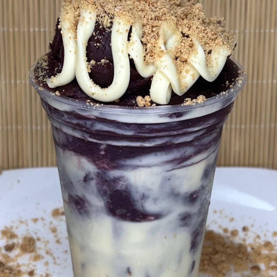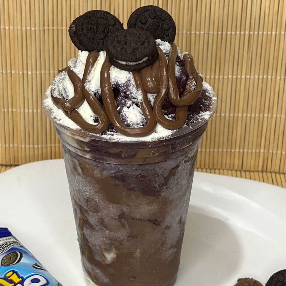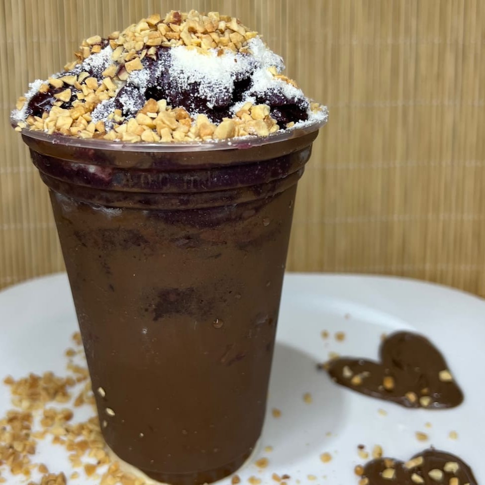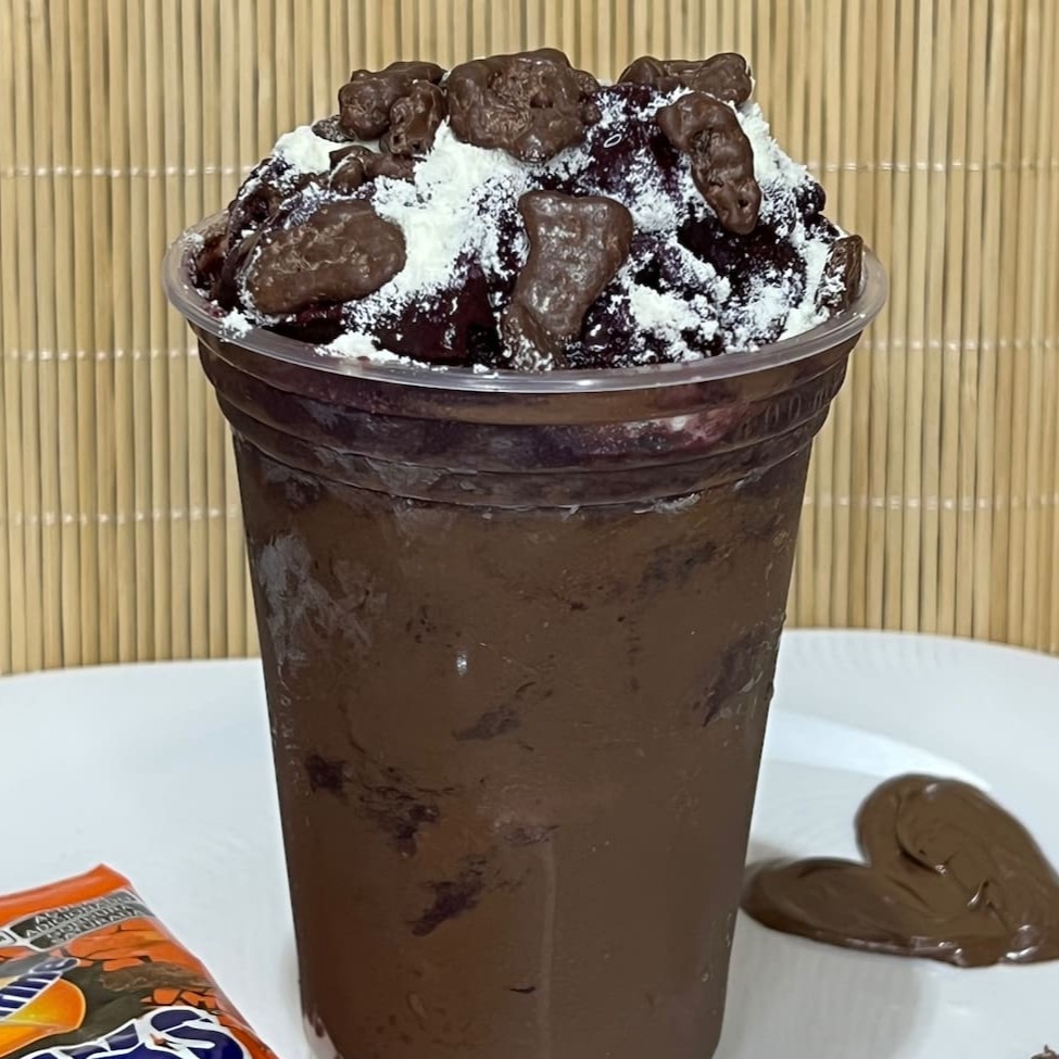 Açaí, leite em pó, creme de avelã, creme Ninho e Oreo.