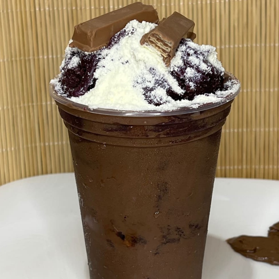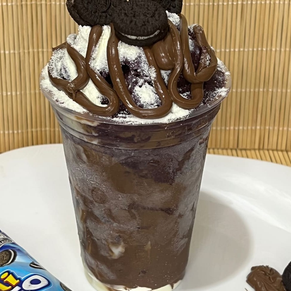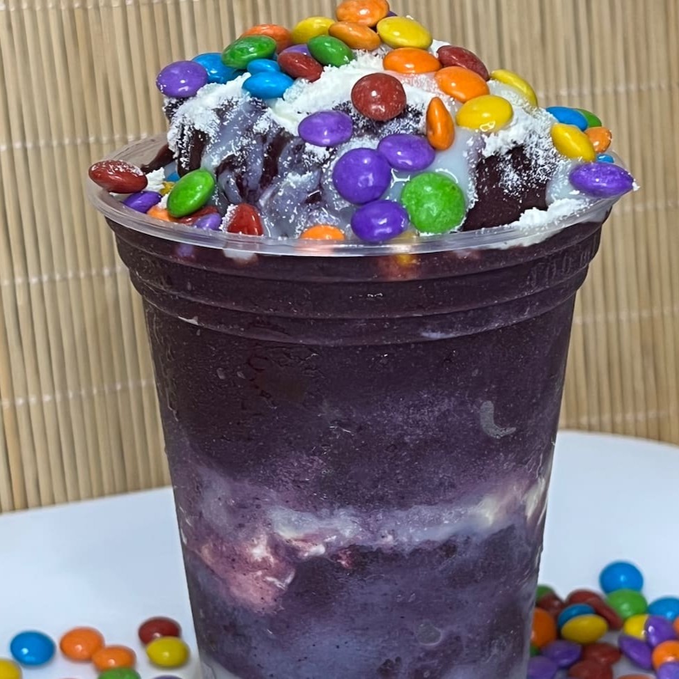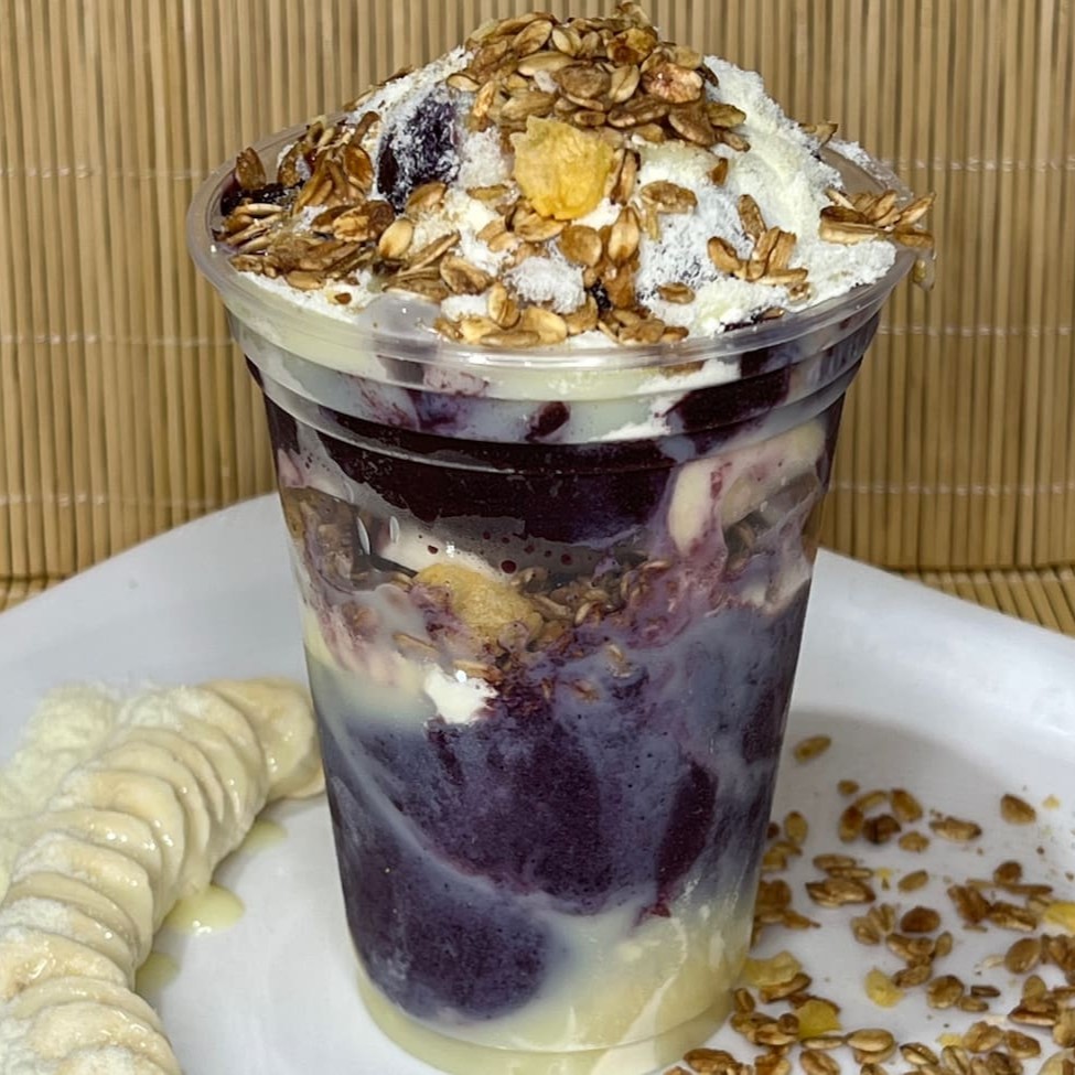 Açaí, leite em pó, creme de avelã, creme Ninho e Oreo.