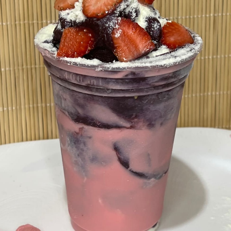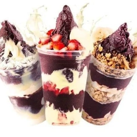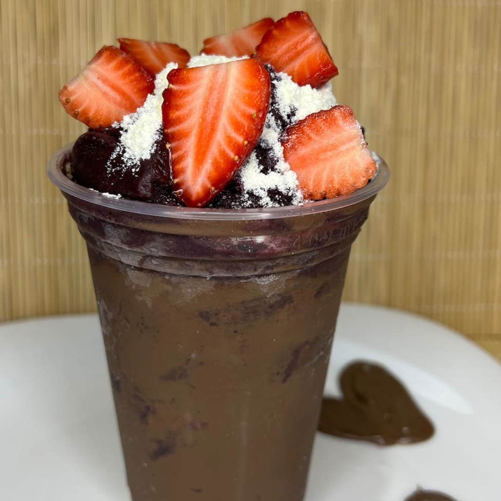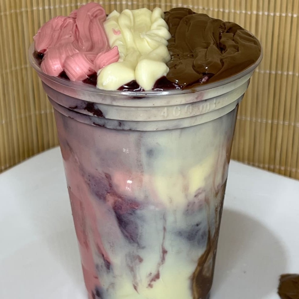 Açaí, leite em pó, creme de avelã, creme de morango e creme Ninho.